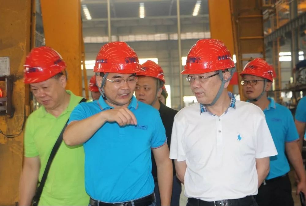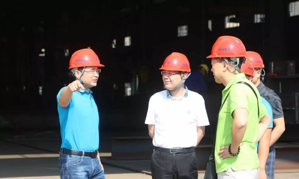 Yi Xinhe, Chairman of the Group, with the senior staff of Huayu Heavy Industry to accompany Mr. Xiong Fangping and his delegation to visit the Group's production base in Heyuan and introduced the scale, production capacity, operation and major projects being produced and processed, including Zhuhai International Convention and Exhibition Center (II). period).
