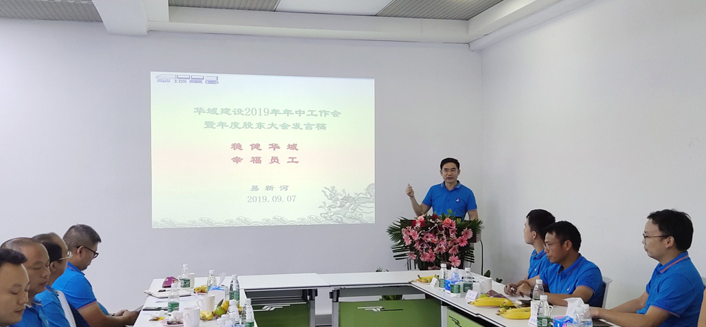 On September 7, 2019, Huayu Construction\'s 2019 Mid-year Work Conference and 2018 Annual Shareholders Meeting were held in Shenzhen. Yi Xinhe, the Chairman of Huayu Group, Zhao Fuxin, Vice President of Huayu Group, Yao Lin, General Manager of Huayu Construction,Liao Chulong, Deputy General Manager of Huayu Construction, and Heads of various departments of Huayu Construction, project managers all participated in the meeting.