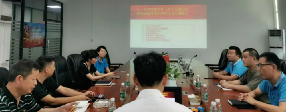 黨辦主任吳志鴻同志組織大家學(xué)習(xí)黨委文件—《關(guān)于開展紀(jì)念建黨99周年系列主題活動的通知》