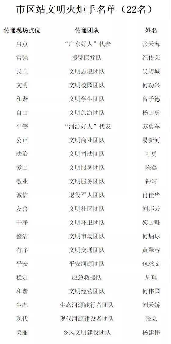 2020年7月24日,河源市委宣傳部公布2020年全市行動(dòng)傳遞文明火炬活動(dòng)的文明火炬手名單。華域集團(tuán)兼華域重工董事長(zhǎng)易新河作為文明商業(yè)團(tuán)隊(duì)代表成為本次活動(dòng)市區(qū)站第八棒文明火炬手,將與“廣東好人”、援鄂醫(yī)療隊(duì)代表、“廣東最美志愿者”、“河源好人”等各行各業(yè)的二十二名代表一起為河源創(chuàng)建文明城市加油助力!