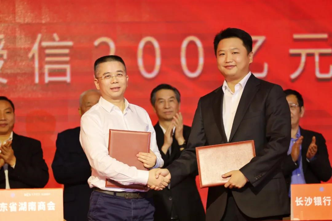 在廣州軍區(qū)副司令員、中將宋文漢,湖南省人大常委會(huì)原副主任蔡力峰,廣東省人大常委會(huì)原副主任肖志恒,湖南省委統(tǒng)戰(zhàn)部副部長(zhǎng)、省工商業(yè)聯(lián)合會(huì)黨組書(shū)記陳瀟,湖南省人民政府駐深圳辦事處主任熊方平,長(zhǎng)沙銀行董事長(zhǎng)朱玉國(guó),長(zhǎng)沙銀行副行長(zhǎng)張曼的見(jiàn)證下,長(zhǎng)沙銀行廣州分行行長(zhǎng)羅剛與廣東省湖南商會(huì)會(huì)長(zhǎng)陳樂(lè)田簽訂了戰(zhàn)略合作協(xié)議。本次簽約,雙方本著“優(yōu)勢(shì)互補(bǔ)、互利誠(chéng)信、相互支持、共謀發(fā)展”的原則,建立全面戰(zhàn)略合作關(guān)系,長(zhǎng)沙銀行廣州分行將為商會(huì)優(yōu)質(zhì)企業(yè)發(fā)展、中小企業(yè)融資提供200億元意向綜合授信額度,進(jìn)一步提供優(yōu)質(zhì)金融服務(wù)、注入重要源頭活水。