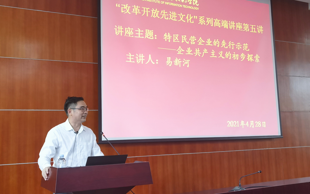 2021年4月28日,華域集團董事長易新河受邀出席深圳信息學院 “改革開放先進文化”系列高端講座,并做了一場名為《特區(qū)民營企業(yè)的先行示范——企業(yè)共產(chǎn)主義的初步探索》專題講座。