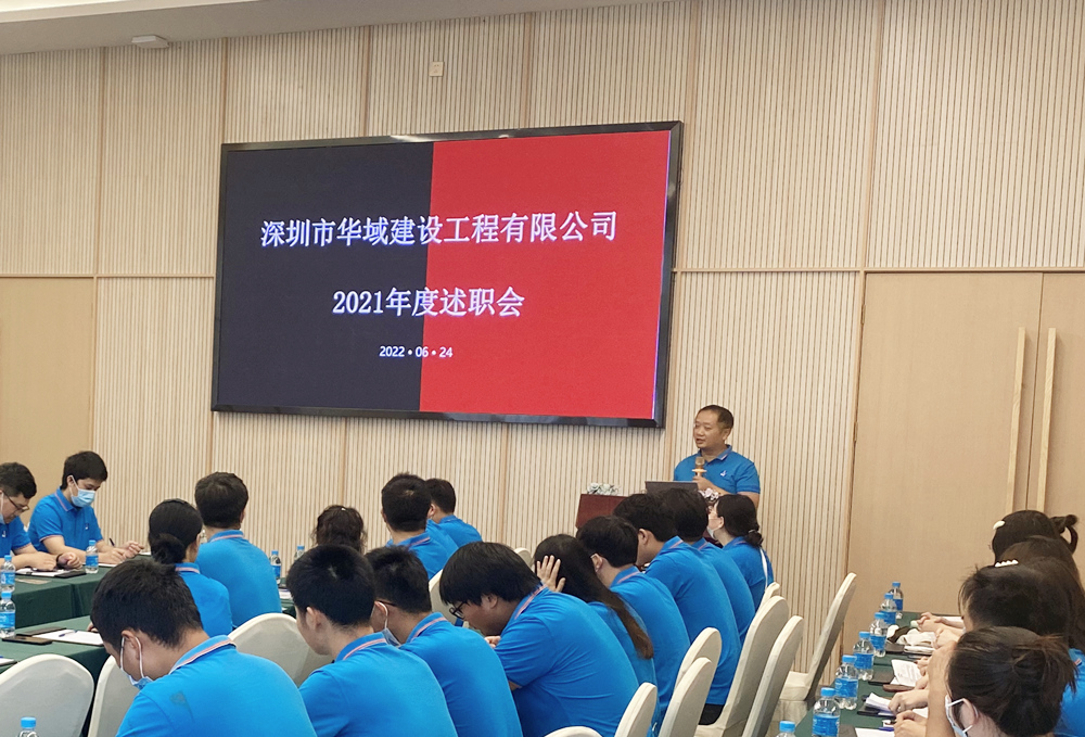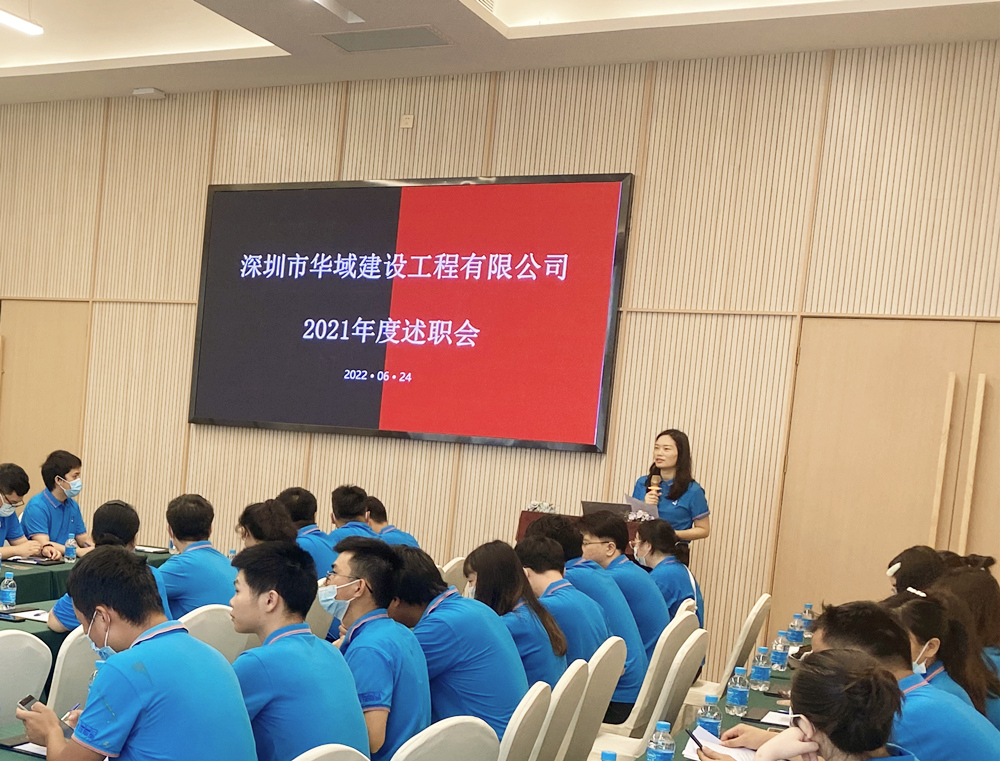 2022年6月24日,華域建設(shè)2021年度述職會議在河源舉行,華域集團(tuán)總裁姚玲,華域建設(shè)總經(jīng)理賓谷云,華域集團(tuán)副總工程師廖初龍,華域建設(shè)副總經(jīng)理黎江南、劉國梁等領(lǐng)導(dǎo)出席了會議。