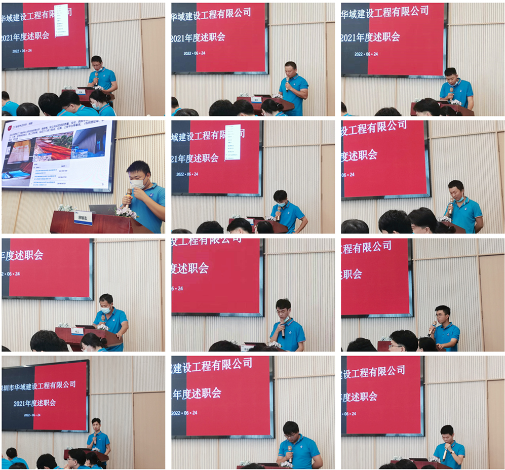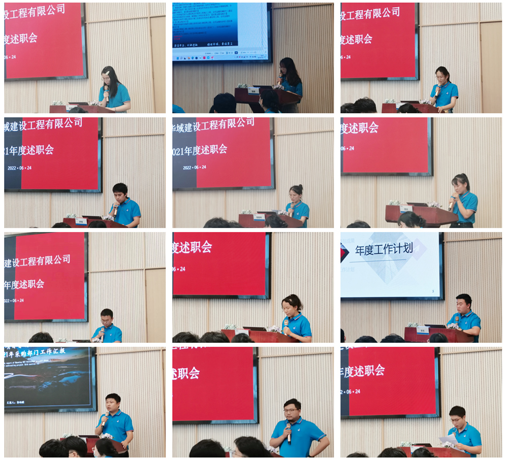 此次述職會采用了自愿報(bào)名的原則,根據(jù)報(bào)名參會員工的崗位分成施工-安全組、技術(shù)-成本組、資料-采購-電工組、職能四個小組,四組員工逐一登場,對自己2021年度的工作做了詳細(xì)回顧和深刻總結(jié)。