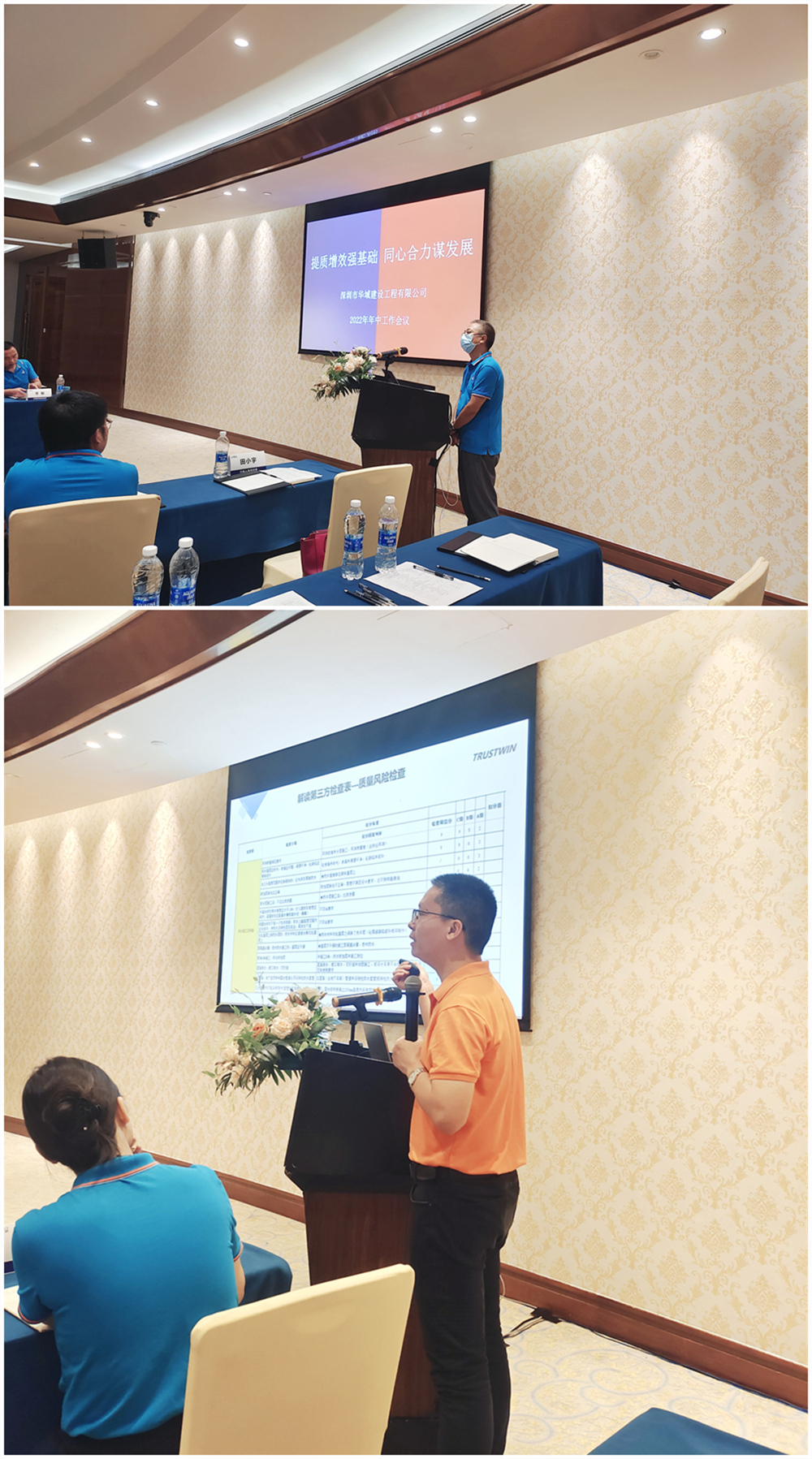 安全是生命線,質(zhì)量是生存線。華域集團(tuán)安委會(huì)副主任廖初龍及專(zhuān)業(yè)機(jī)構(gòu)嘉賓率先做了安全管理、質(zhì)量管理等方面工作的分享;隨后華域建設(shè)副總經(jīng)理彭德軍、黎江南、田富華、劉國(guó)梁分別回顧了2022年上半年的工作情況,也根據(jù)會(huì)議主題對(duì)2022年下半年的工作計(jì)劃做了詳細(xì)闡述。