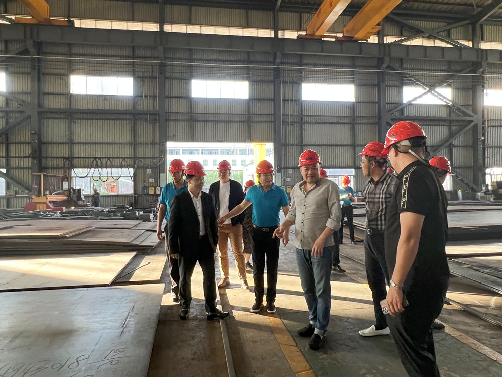易新河董事長(zhǎng)率眾高層陪同蔡岳會(huì)長(zhǎng)一行先是深入工廠車間參觀,向蒞臨的領(lǐng)導(dǎo)介紹華域重工工廠的布局、產(chǎn)能、制造加工流程、目前正在制造的產(chǎn)品和具體用途,以及正在通過(guò)建設(shè)二期工廠來(lái)擴(kuò)充產(chǎn)能等。