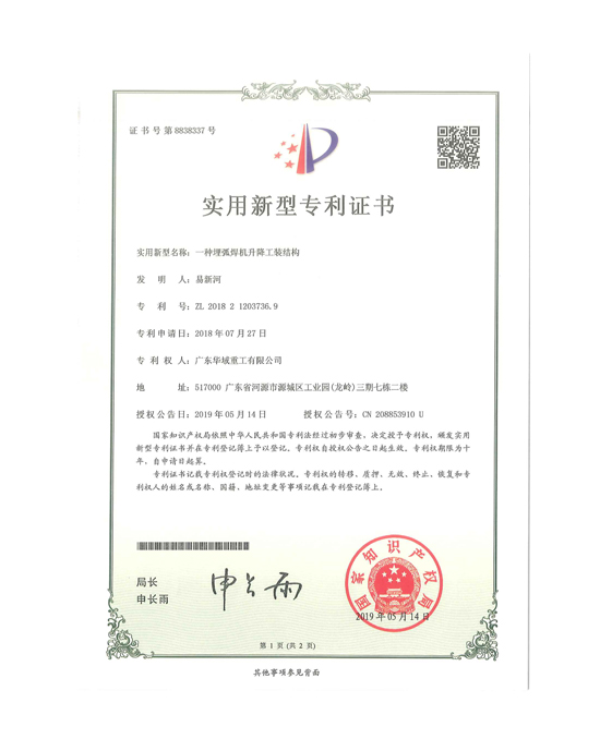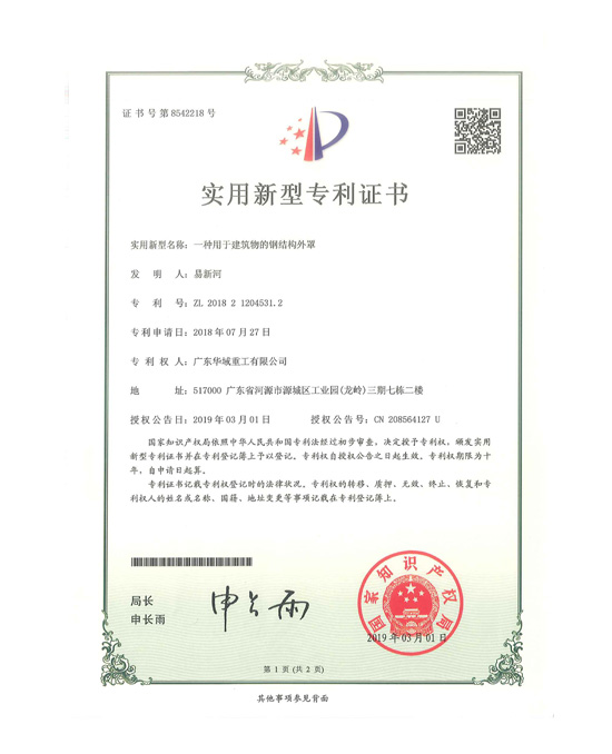 實用新型一種人行通道用新型鋼結構2017專利證書