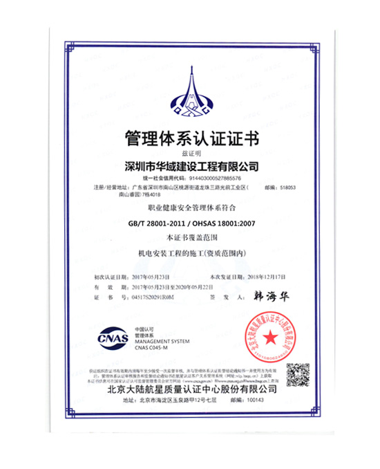 華域建設OHSAS18001職業(yè)健康管理體系認證